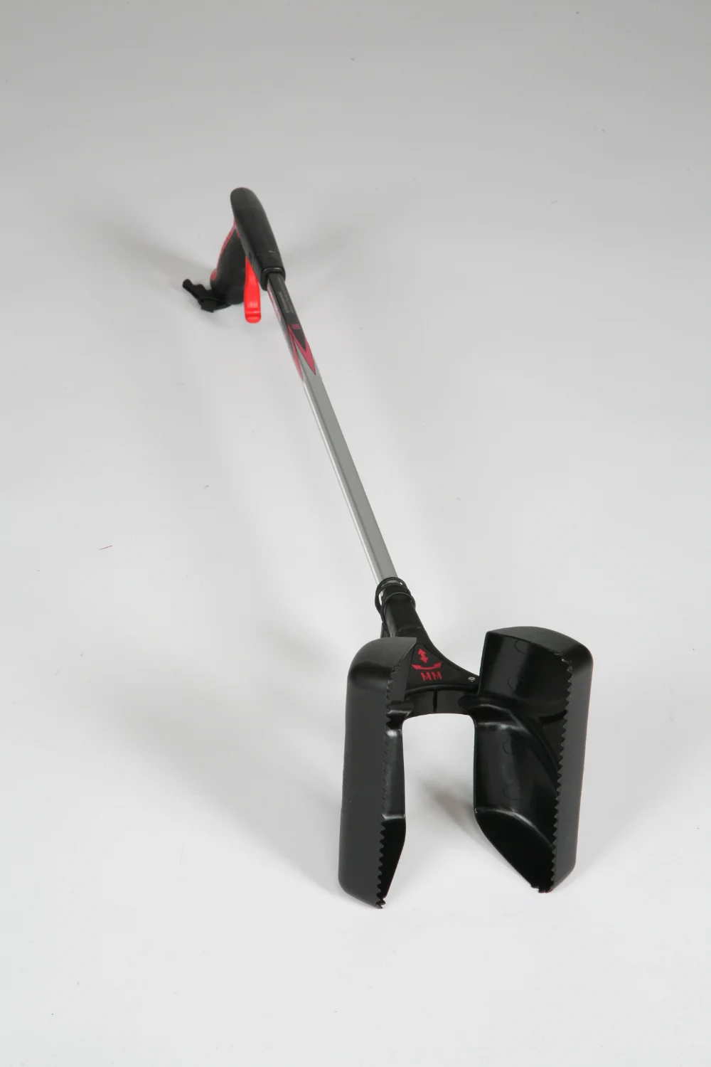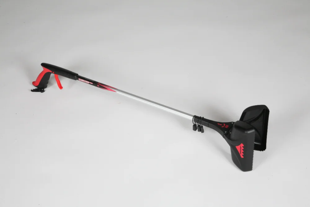Tube aluminium carré Poignée gâchette ergonomique Mâchoire PVC dentée, système de fermeture par élastique Mâchoire rotative à 360 ° Largeur d’ouverture : 11 cm Poids : 450 g Longueur : 82cm