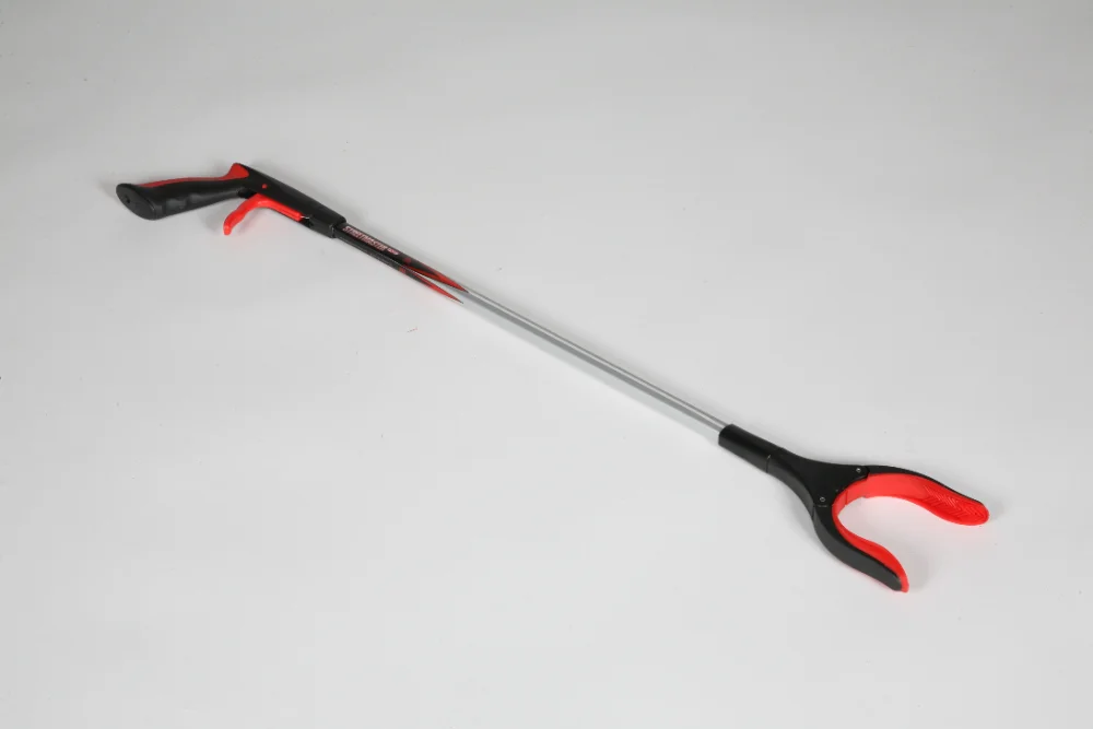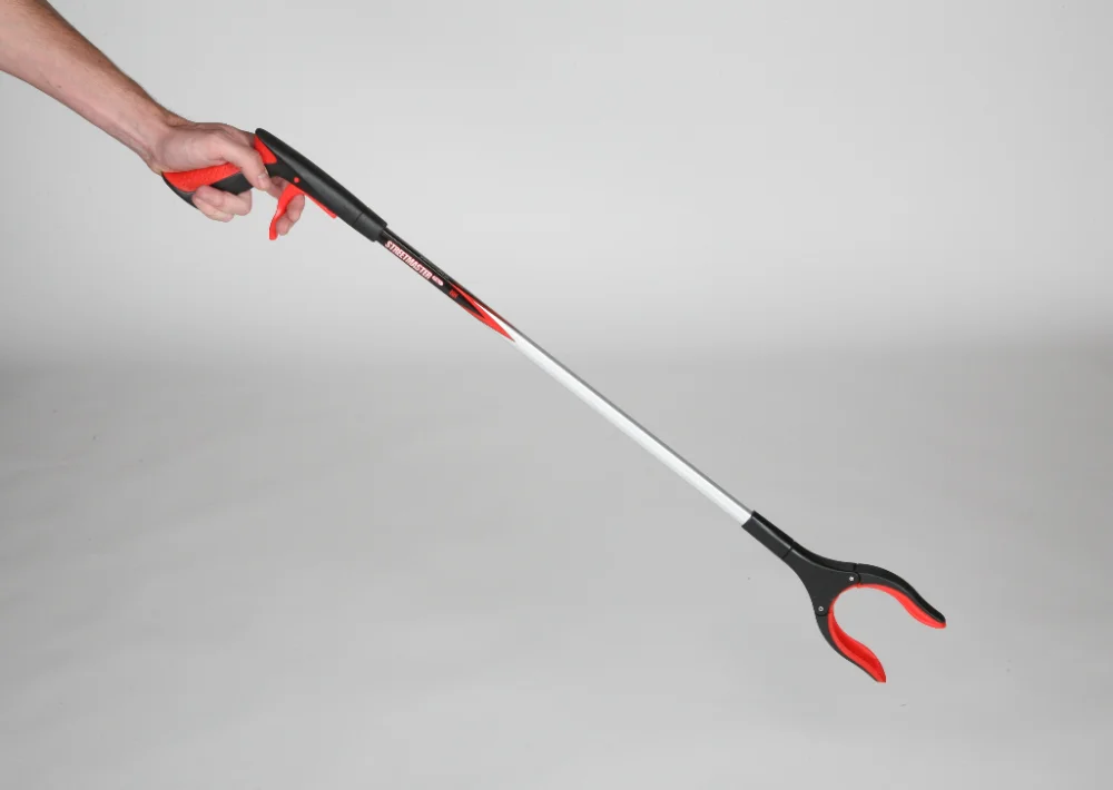 Tube aluminium carré Poignée gâchette plastique Mâchoire caoutchouc dentée Mâchoire orientable à 90 ° Largeur d’ouverture : 10 cm Poids : 234 g 2 longueurs disponibles